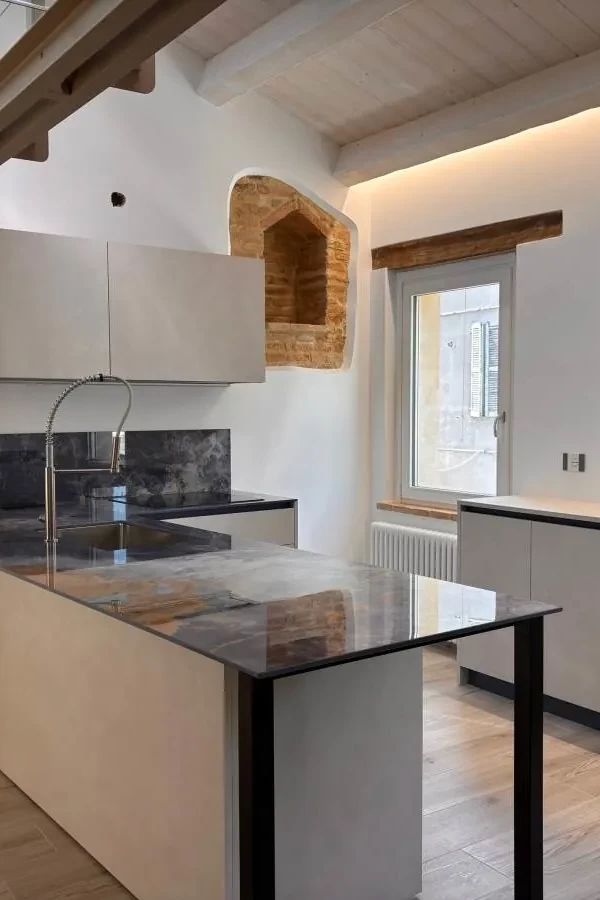 Il progetto di ristrutturazione ha preso forma nel rispetto dell’identità originale dell’edificio, mantenendo gli elementi architettonici più significativi e armonizzandoli con soluzioni moderne e funzionali. Ogni ambiente è stato ripensato per offrire comfort, efficienza e bellezza, con una particolare attenzione alla luminosità naturale e alla relazione tra interno ed esterno.