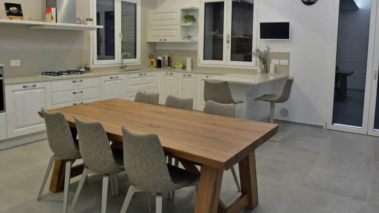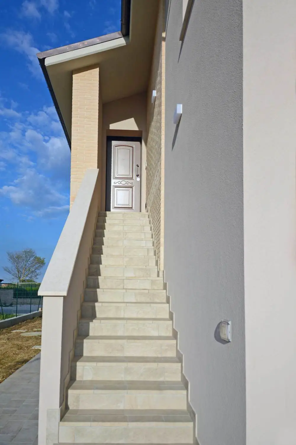 Casa Marika e Marta è una moderna villetta bifamiliare progettata e realizzata con struttura in cemento armato e blocchi termici da 41 cm, garanzia di solidità, efficienza energetica e ottimo isolamento. Le due unità abitative di circa 100 mq ciascuna offrono ambienti spaziosi e funzionali: ingresso su soggiorno, cucina abitabile, tre camere da letto e due bagni, uno principale e uno di servizio, studiati per rispondere alle esigenze quotidiane di comfort e praticità.