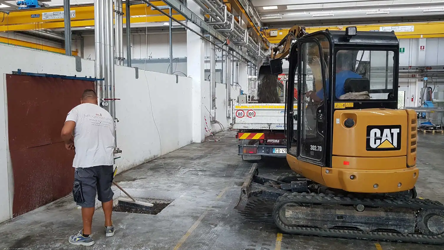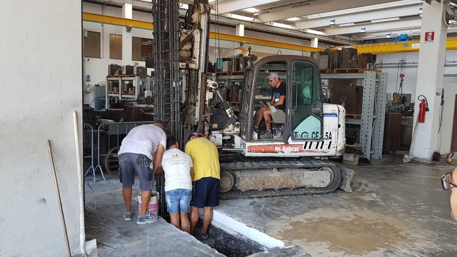 Intervento di ammodernamento per la sede produttiva di Monte San Vito, con realizzazione di nuove fondazioni destinate al montaggio delle linee di produzione.